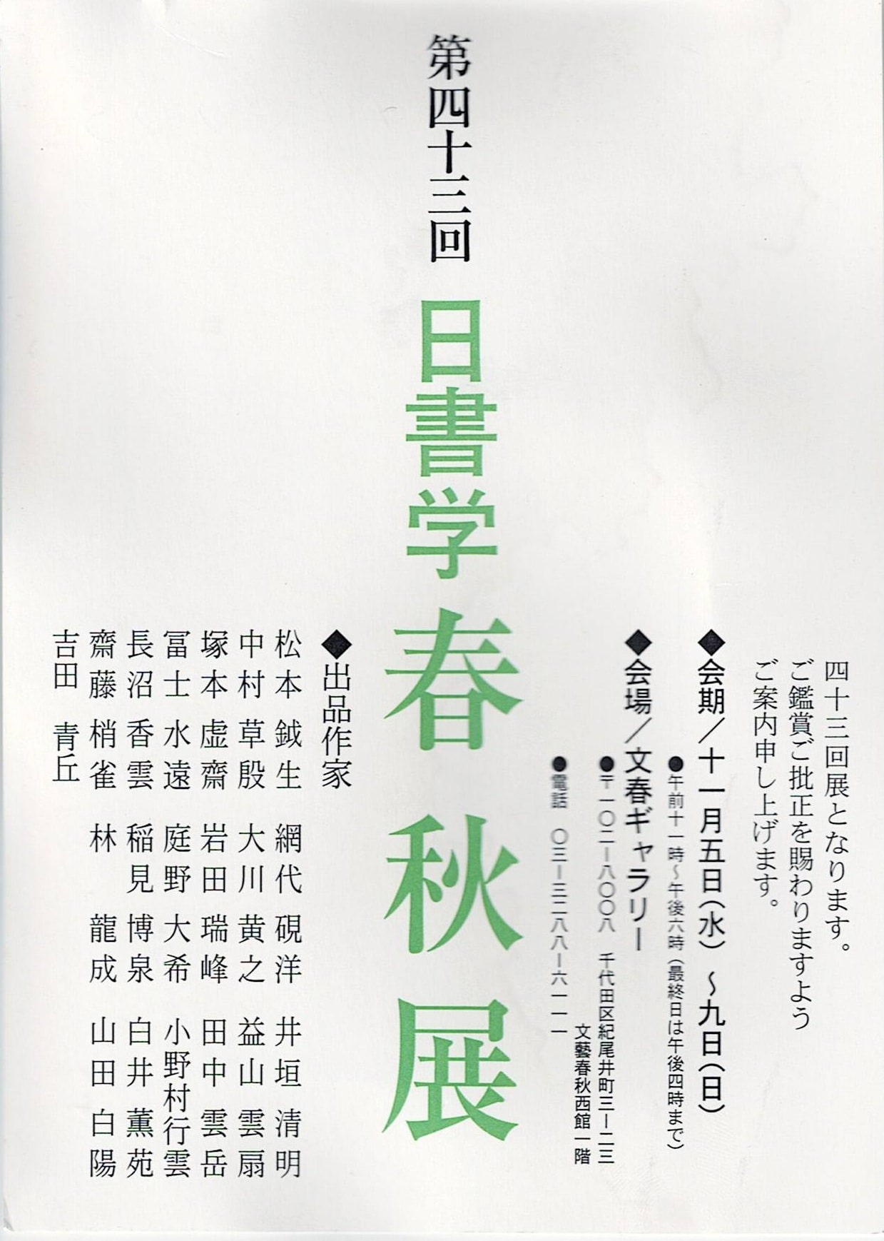 第43回日書学 春秋展を開催いたします。是非ご来場ください。